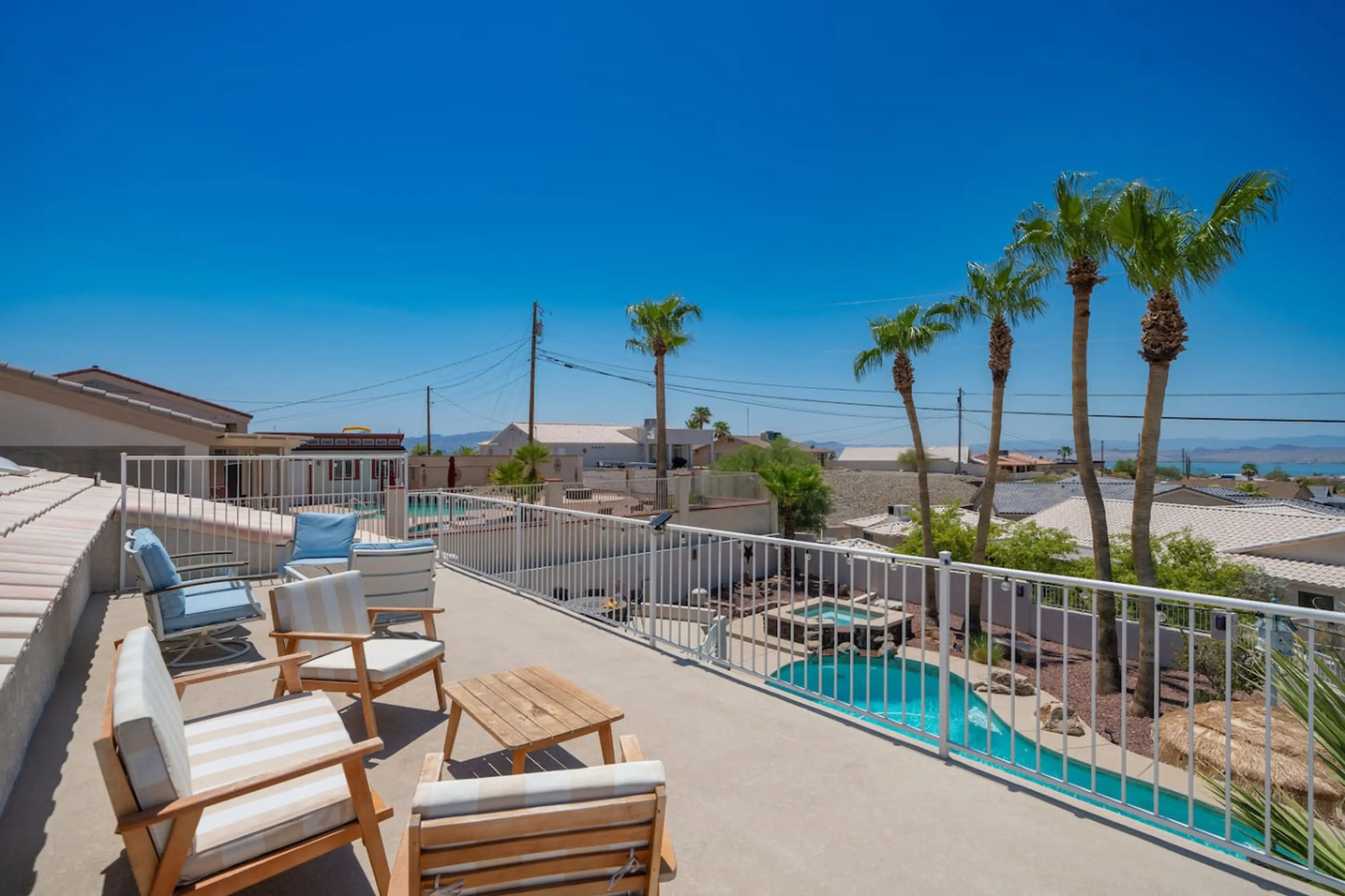 Welcome to Escape at Empress: a beautifully designed LUXURY home offering top-tier amenities, a resort-style backyard, panoramic rooftop deck views, lush landscaping, and a spacious, stylish interior perfect for families, retreats, and unforgettable Havasu getaways. Centrally located – just minutes...
